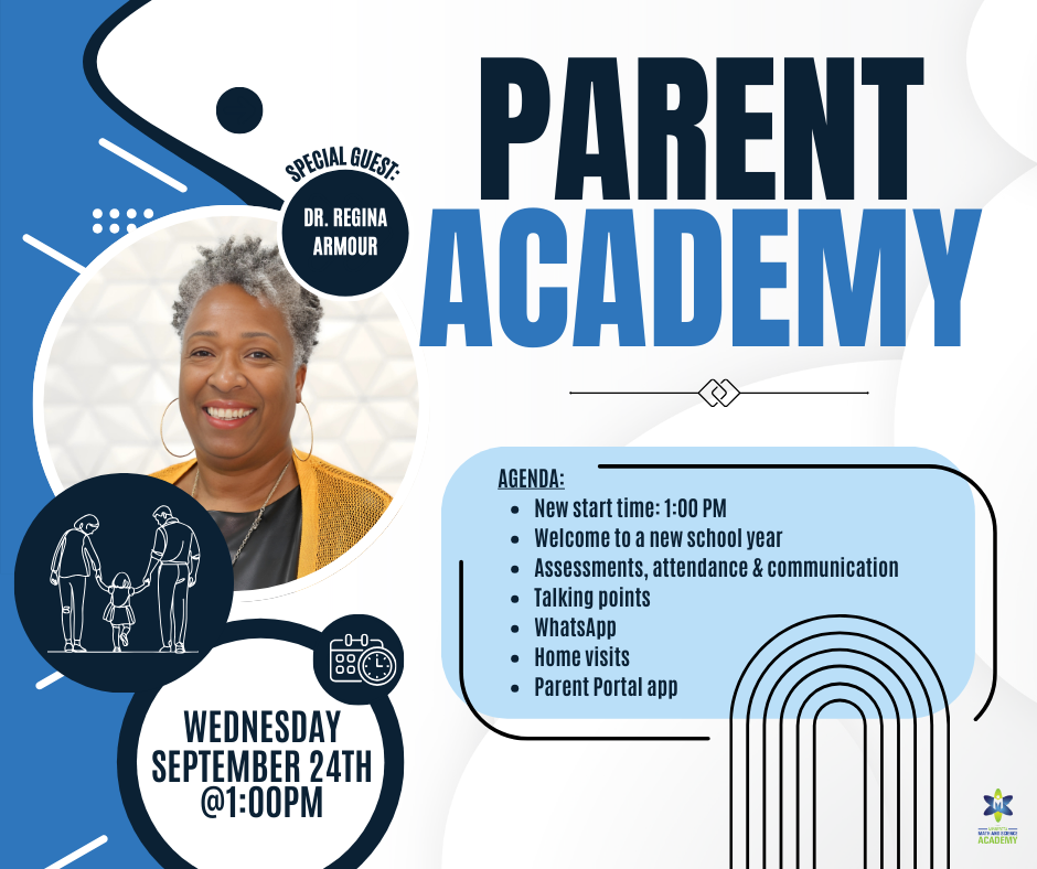 Join us for an afternoon of connection and learning with special guest Dr. Regina Armour from Concept Schools. Don’t miss important updates on assessments, attendance, and more! 💙