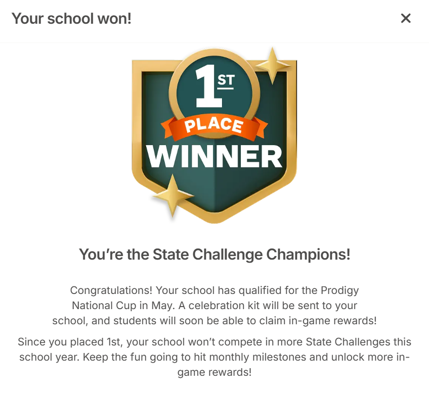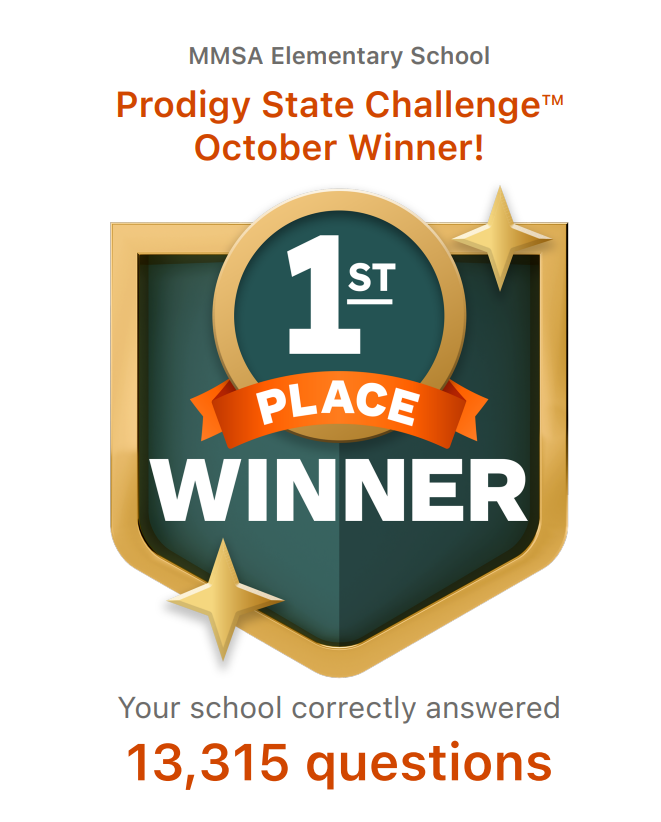 Our MMSA elementary student took 1st place in the Prodigy State Challenge for October! ππ―